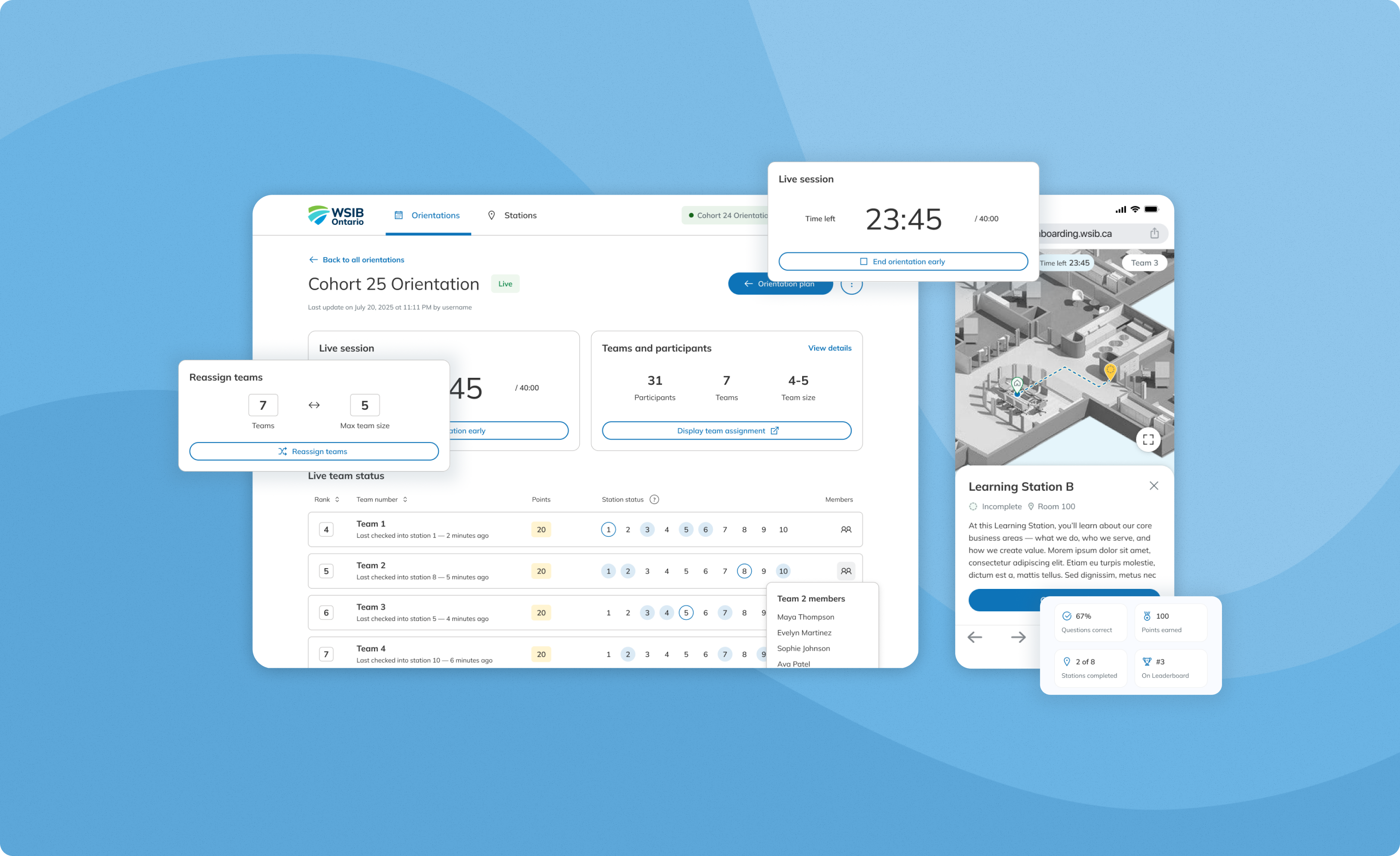 WSIB Onboarding Tool — Building a gamified onboarding tool for WSIB new hires and an admin controls for managing the experience.